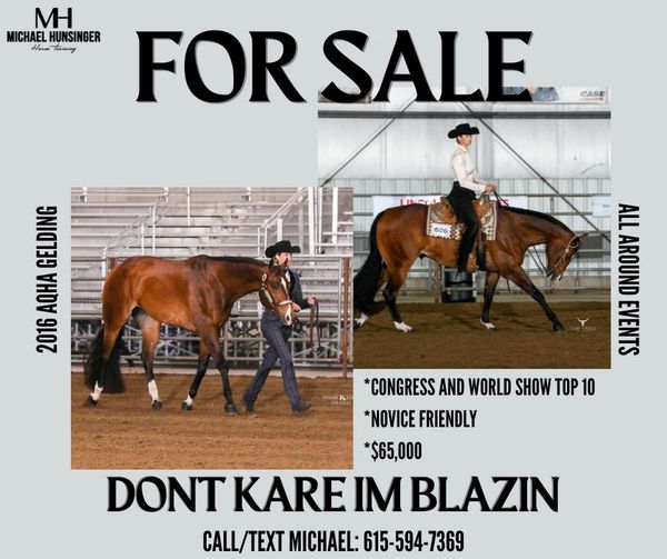 "Moose" is a 9 year old 16.2 hand AQHA Gelding. He excells in the All Around events - Showmanship, Horsemanship, Equitation, Trail and Western Riding. He is Green Eligible in the Trail and Western Riding. Suitable for any level rider. He loves to take care of and teach a novice rider. He has been shown all over the country. Congress and World Show quality horse. Currently being shown by a Rookie Youth rider just out of the Walk Trot division.